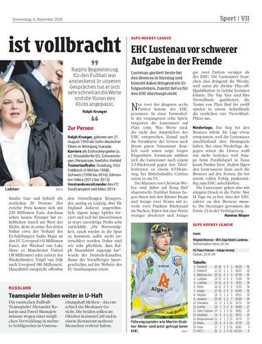 Lustenau gastiert heute bei den Broncos in Sterzing und braucht dabei dringend ein Erfolgserlebnis. Zuletzt lief es für den EHC überhaupt nicht.