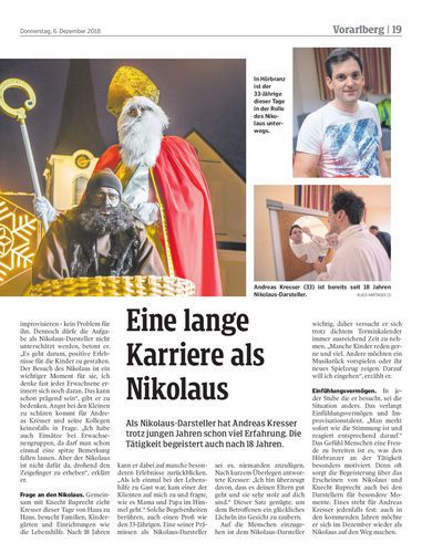 Als Nikolaus-Darsteller hat Andreas Kresser trotz jungen Jahren schon viel Erfahrung. Die Tätigkeit begeistert auch nach 18 Jahren.