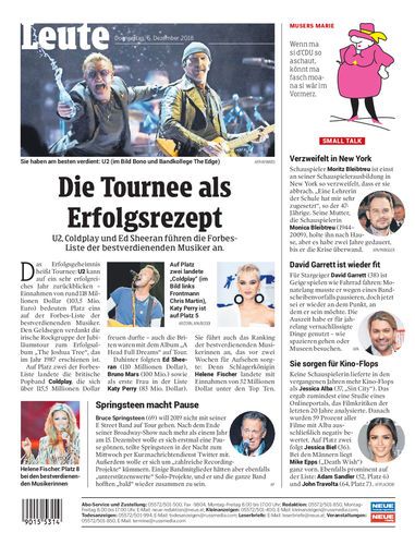 U2, Coldplay und Ed Sheeran führen die Forbes-Liste der bestverdienenden Musiker an.
