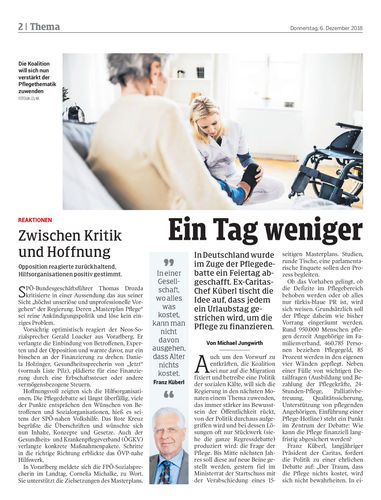 In Deutschland wurde im Zuge der Pflegedebatte ein Feiertag abgeschafft. Ex-Caritas-Chef Küberl tischt die Idee auf, dass jedem ein Urlaubstag gestrichen wird, um die Pflege zu finanzieren.