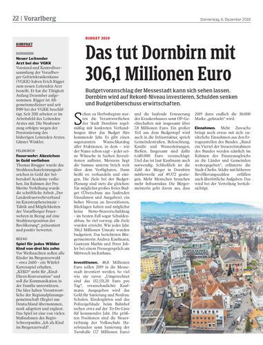 Budgetvoranschlag der Messestadt kann sich sehen lassen. Dornbirn wird auf Rekord-Niveau investieren, Schulden senken und Budgetüberschuss erwirtschaften.