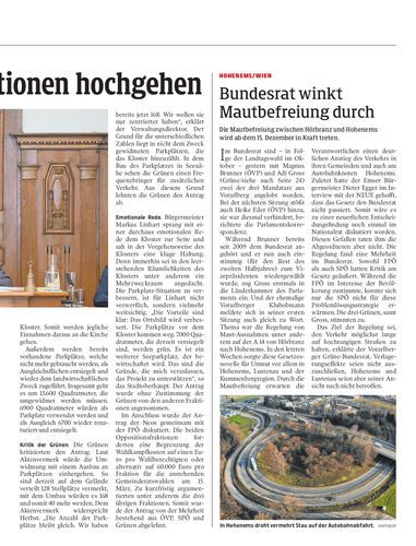 Die Mautbefreiung zwischen Hörbranz und Hohenems wird ab dem 15. Dezember in Kraft treten.