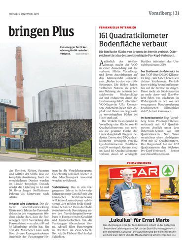 Die fünffache Fläche von Bregenz ist bereits verbaut. Österreichweit ist das der zweitniedrigste Pro-Kopf-Verbrauch.