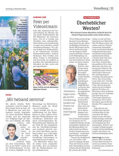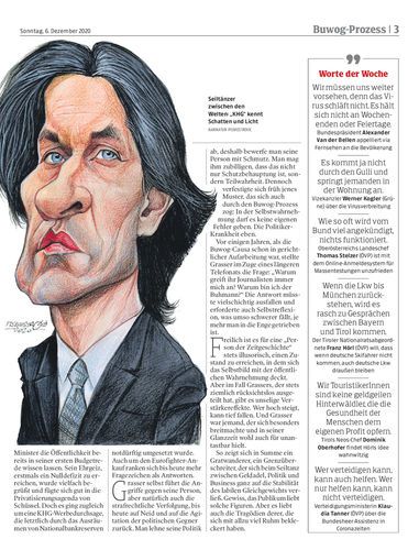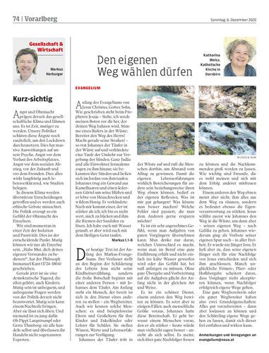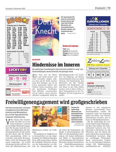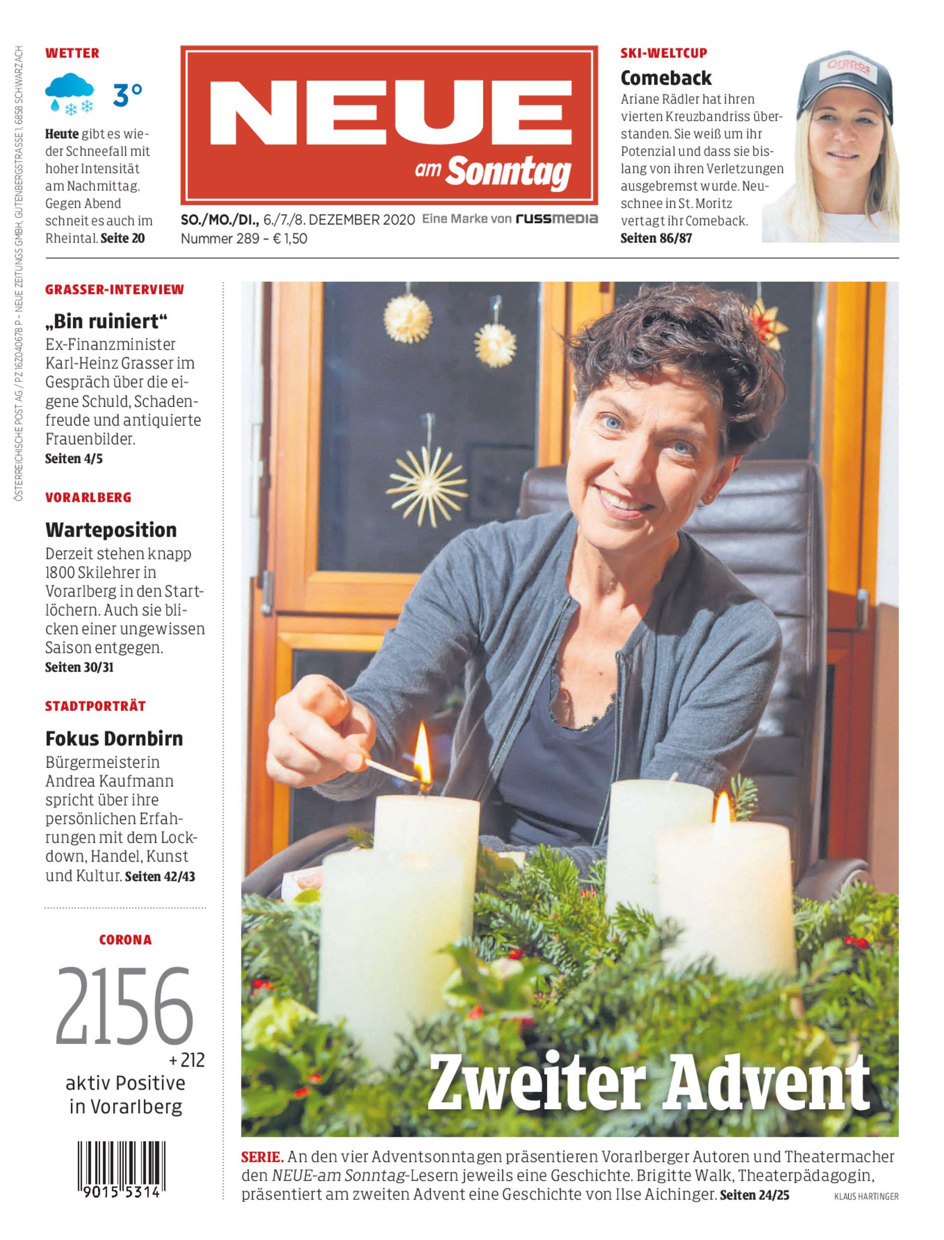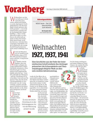 Serie. An den vier Adventsonntagen präsentieren Vorarlberger Autoren und Theatermacher den NEUE-am Sonntag-Lesern jeweils eine Geschichte. Brigitte Walk, Theaterpädagogin, präsentiert am zweiten Advent eine Geschichte von Ilse Aichinger. Seiten 24/25 Klaus Hartinger