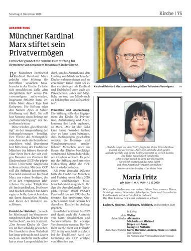 Erzbischof gründet mit 500.000 Euro Stiftung für Betroffene von sexuellem Missbrauch in der Kirche.