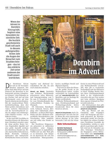 Wenn der Advent in Dornbirn Einzug hält, beginnt eine besonders besinnliche Zeit. Die festlich geschmückte Stadt soll auch in diesem außergewöhnlichen Jahr die Augen der Besucher zum Strahlen bringen – das ist das erklärte Ziel unter anderem der Stadtverantwortlichen.
