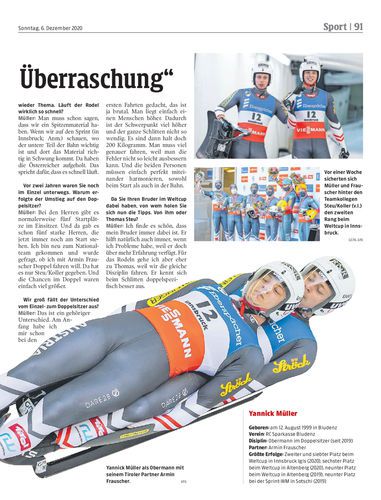 Interview. Yannick Müller feierte im Doppelsitzer vor einer Woche seinen ersten Podestplatz. Gestern folgte in Altenberg Rang sechs. Der 21-jährige Bludenzer ging vor zwei Jahren noch im Einer an den Start.