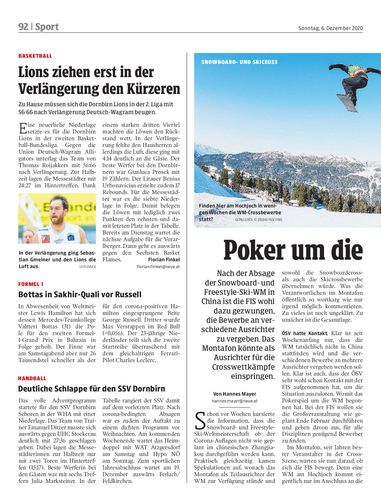 Nach der Absage der Snowboard- und Freestyle-Ski-WM in China ist die FIS wohl dazu gezwungen, die Bewerbe an verschiedene Ausrichter zu vergeben. Das Montafon könnte als Ausrichter für die Crosswettkämpfe einspringen.
