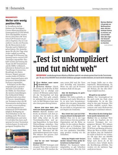 Interview. Landeshauptmann Markus Wallner spricht von einem guten Start in die Teststrategie. Ob aus etwa 100.000 Tests letztlich Schlüsse gezogen werden können, ist noch nicht eindeutig.