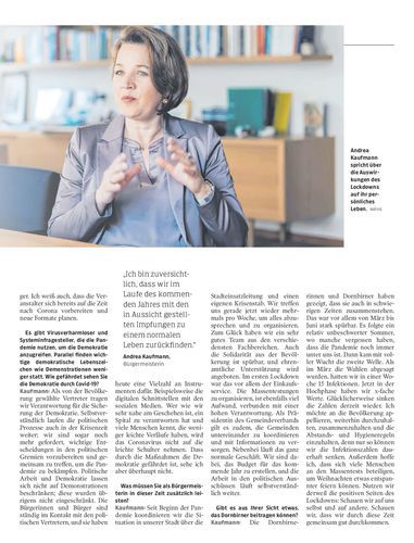 Interview. Eine Zeit im Haltmodus: normales Leben anhalten, trotzdem zusammenhalten, Abstand halten, Hygienemaßnahmen einhalten. Was Dornbirns Bürgermeisterin Andrea Kaufmann von ihrer privaten Situation hält, warum sie die Behauptung haltlos findet, das Virus gefährde die Demokratie, und wie sie die Dornbirnerinnen und Dornbirner zum Durchhalten motiviert.