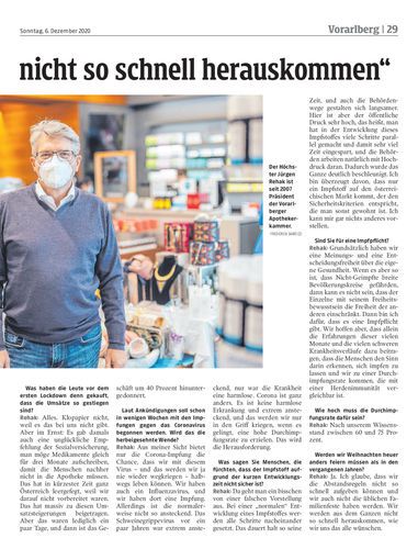 Interview. Der Präsident der Vorarlberger Apothekerkammer, Jürgen Rehak, spricht über das neuseeländische Modell, eine Impfpflicht und warum die Apotheken am Jahresende ein Umsatzminus aufweisen werden.