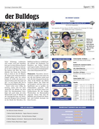 Spielbericht. Nach einer starken Leistung und Toren von Rapuzzi, Jevpalovs, Schwinger und Yogan gewinnt Dornbirn das formelle Auswärtsspiel gegen Bratislava im Messestadion mit 4:1.