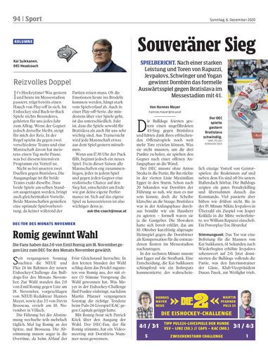 Die Fans haben das 2:0 von Emil Romig am 18. November gegen Linz zum DEC-Tor des Monats November gewählt.