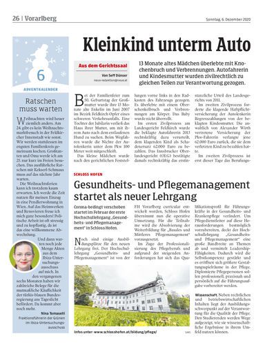 Corona-bedingt verschoben startet im Februar der erste Hochschullehrgang „Gesundheits- und Pflegemanagement“ in Schloss Hofen.