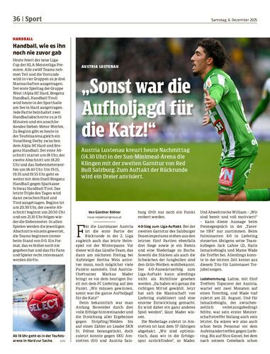 Austria Lustenau kreuzt heute Nachmittag (14.30 Uhr) in der Sun-Minimeal-Arena die Klingen mit der zweiten Garnitur von Red Bull Salzburg. Zum Auftakt der Rückrunde wird ein Dreier anvisiert.