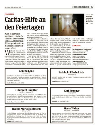 Auch in der Weihnachtszeit ist die Caritas für Menschen in Not da. An folgenden Öffnungszeiten kann man sich an die Caritas wenden.