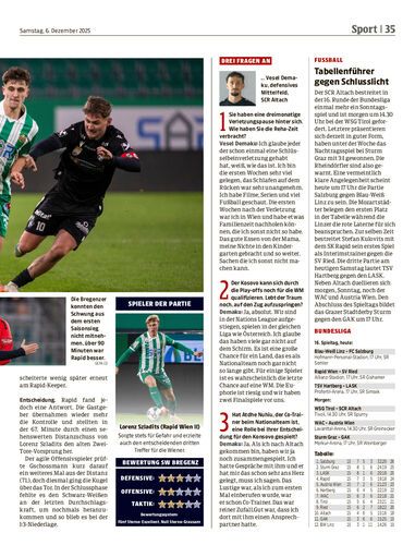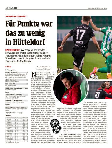 Spielbericht. SW Bregenz konnte den Schwung des ersten Saisonsiegs aus der Vorwoche nicht mitnehmen: Beim SK Rapid Wien II setzte es trotz guter Phase nach der Pause eine 1:3-Niederlage.