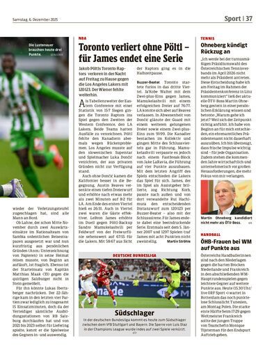 Jakob Pöltls Toronto Raptors verloren in der Nacht auf Freitag zu Hause gegen die Los Angeles Lakers mit 120:123. Der Wiener fehlte weiterhin.