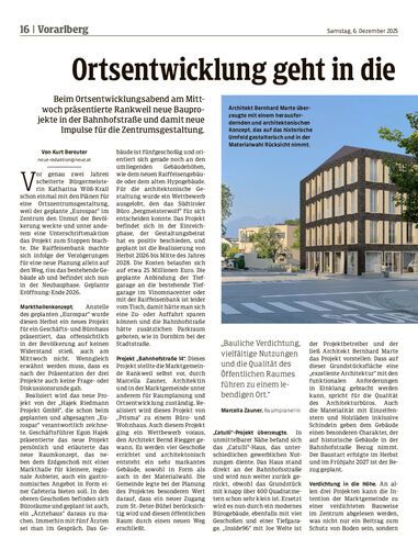 Beim Ortsentwicklungsabend am Mittwoch präsentierte Rankweil neue Bauprojekte in der Bahnhofstraße und damit neue Impulse für die Zentrumsgestaltung.