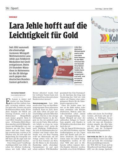 Seit 2012 sammelt die ehemalige Junioren-Minigolf-Weltmeisterin Lara Jehle aus Feldkirch Medaillen bei Großereignissen. Beim 24-Stunden-Marathon in Hohenems ist die 28-Jährige auch gegen den deutschen Bundestrainer gefordert.