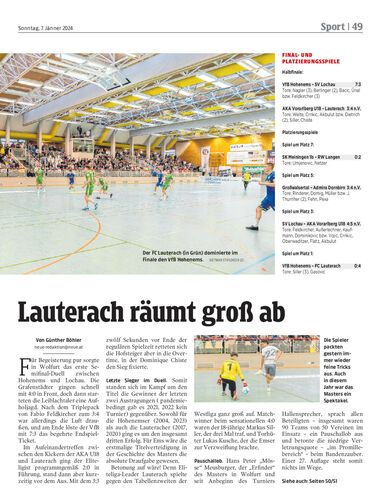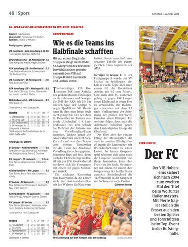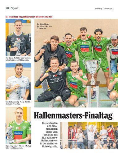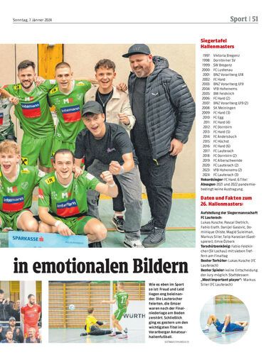 Der VfB Hohenems sichert sich nach 2004 zum zweiten Mal den Titel beim Wolfurter Hallenmasters. Mit Pierre Nagler stellen die Emser auch den besten Spieler und Torschützen beim Top-Event in der Hofsteighalle.