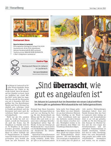 Im Johann in Lauterach hat im Dezember ein neues Lokal eröffnet: Im Nevo gibt es gehobene Wirtshausküche mit Selbstgemachtem.