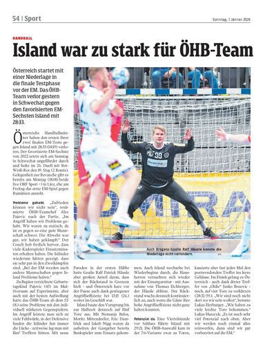 Österreich startet mit einer Niederlage in die finale Testphase vor der EM. Das ÖHB-Team verlor gestern in Schwechat gegen den favorisierten EM-Sechsten Island mit 28:33.