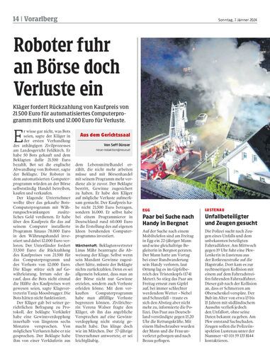 Kläger fordert Rückzahlung von Kaufpreis von 21.500 Euro für automatisiertes Computerprogramm mit Bots und 12.000 Euro für Verluste.