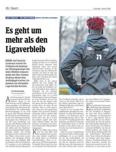 Essay. Auf Austria Lustenau wartet im Frühjahr ein beinharter Abstiegskampf. Die Grün-Weißen müssen dabei mit Neo-Trainer Andreas Heraf eine Aufholjagd starten. Gedanken zur aktuellen Lage bei der Austria.