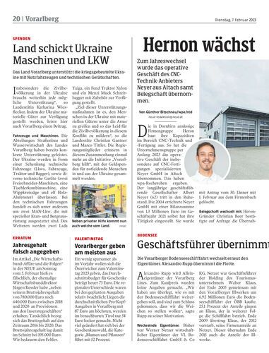 Zum Jahreswechsel wurde das operative Geschäft des CNC-Technik-Anbieters Neyer aus Altach samt Belegschaft übernommen.