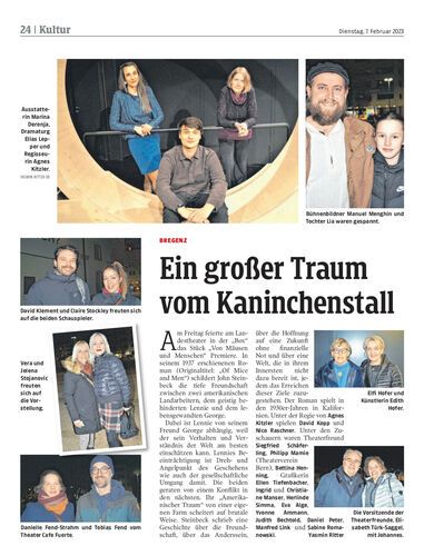 John Steinbecks „Von Mäusen und Menschen“ in der Inszenierung von Agnes Kitzler feierte am Freitag Premiere in der „Box“ .