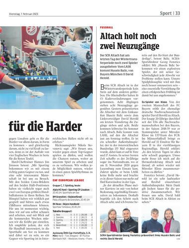 Der SCR Altach hat am letzten Tag der Wintertransferperiode noch zwei Spieler ausgeliehen: Vom LASK kommt Husein Balic, von Bayern München II David Herold.