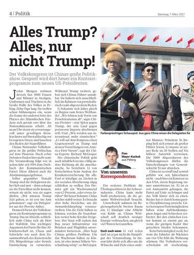 Der Volkskongress ist Chinas große Politikshow. Gespielt wird dort heuer ein Kontrastprogramm zum neuen US-Präsidenten.