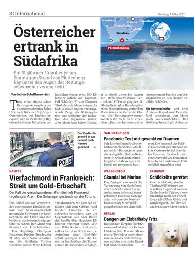 Ein 51-jähriger Urlauber ist am Sonntag am Strand von Plettenberg Bay unter den Augen der Rettungsschwimmer verunglückt.