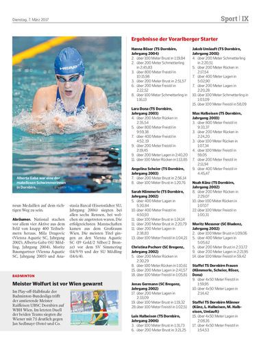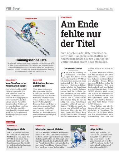 Zum Abschluss der Österreichischen Schwimm-Hallenmeisterschaften der Nachwuchsklasse blieben Vorarlbergs Vertretern insgesamt neun Medaillen.