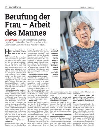 Interview. Heide Schmidt war am Montagabend zu Gast bei den Neos in Dornbirn. Diskutiert wurde über die Rolle der Frau.