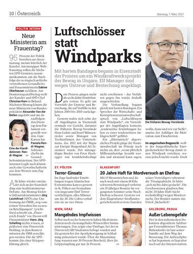 Mit harten Bandagen begann in Eisenstadt der Prozess um ein Windkraftwerksprojekt der Bewag in Ungarn. Elf Manager sind wegen Untreue und Bestechung angeklagt.