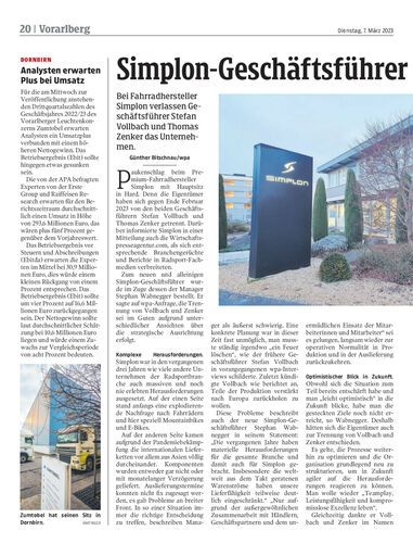 Bei Fahrradhersteller Simplon verlassen Geschäftsführer Stefan Vollbach und Thomas Zenker das Unternehmen.