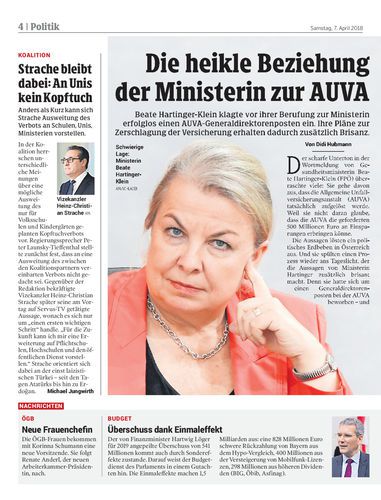 Beate Hartinger-Klein klagte vor ihrer Berufung zur Ministerin erfolglos einen AUVA-Generaldirektorenposten ein. Ihre Pläne zur Zerschlagung der Versicherung erhalten dadurch zusätzlich Brisanz.