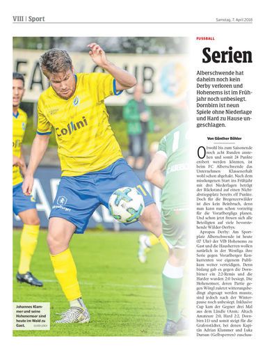 Alberschwende hat daheim noch kein Derby verloren und Hohenems ist im Frühjahr noch unbesiegt. Dornbirn ist neun Spiele ohne Niederlage und Hard zu Hause ungeschlagen.