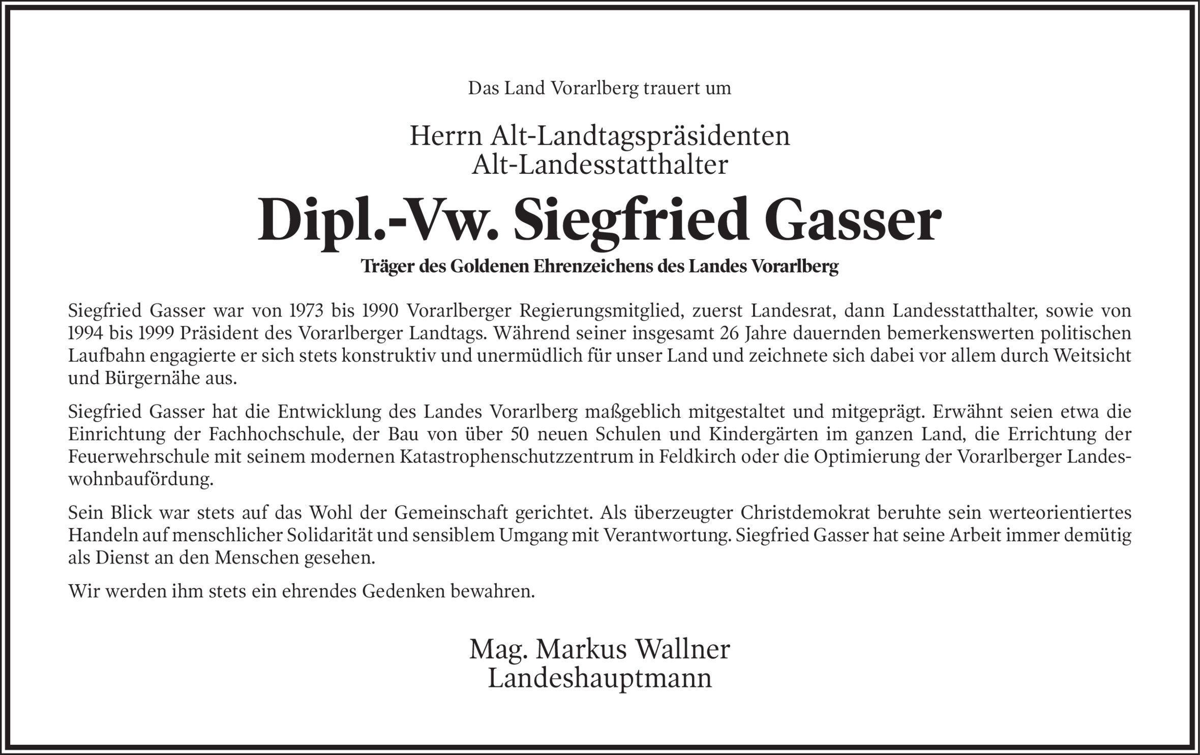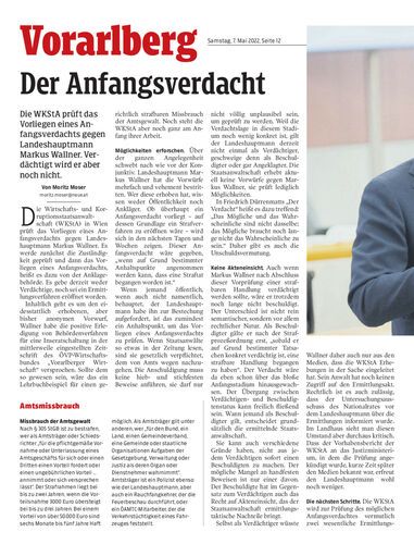 Die WKStA prüft das Vorliegen eines Anfangsverdachts gegen Landeshauptmann Markus Wallner. Verdächtigt wird er aber noch nicht.