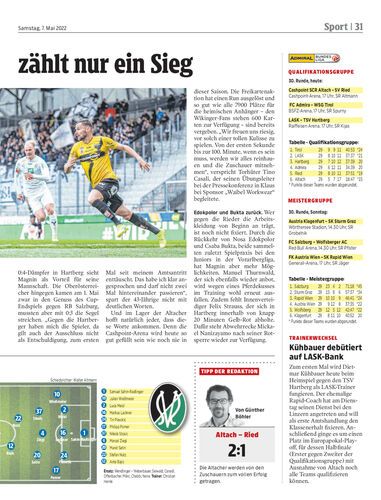 Nach dem herben Dämpfer in Hartberg wollen die Altacher heute in der Cashpoint-Arena (17 Uhr) gegen die Rieder einen erfolgreichen Endspurt im Abstiegskampf einläuten.