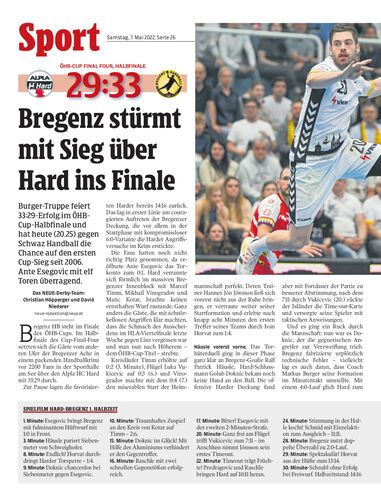 Burger-Truppe feiert 33:29-Erfolg im ÖHB-Cup-Halbfinale und hat heute (20.25) gegen Schwaz Handball die Chance auf den ersten Cup-Sieg seit 2006. Ante Esegovic mit elf Toren überragend.