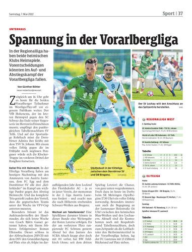 In der Regionalliga haben beide heimischen Klubs Heimspiele. Vorentscheidungen könnten im Auf- und Abstiegskampf der Vorarlbergliga fallen.