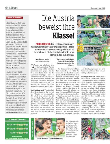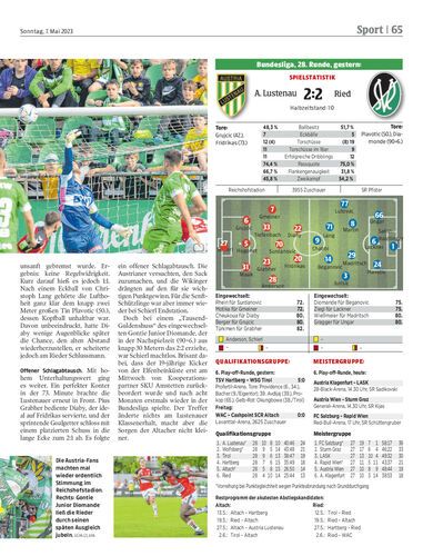 Spielbericht. Die Lustenauer müssen nach zweimaliger Führung gegen die Rieder zwar den Last-Second-Ausgleich zum 2:2 hinnehmen, bleiben mit dem Punkt aber sicher in der Bundesliga.