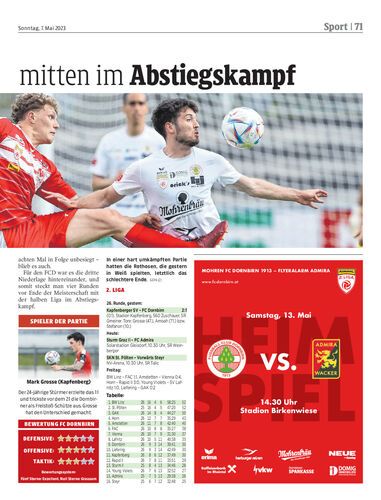 Der FC Dornbirn unterliegt beim Kapfenberger SV nach einer 1:0-Pausenführung mit 1:2. Zudem scheidet Goalgetter Gustavo Balotelli knapp vor dem Seitenwechsel verletzt aus.