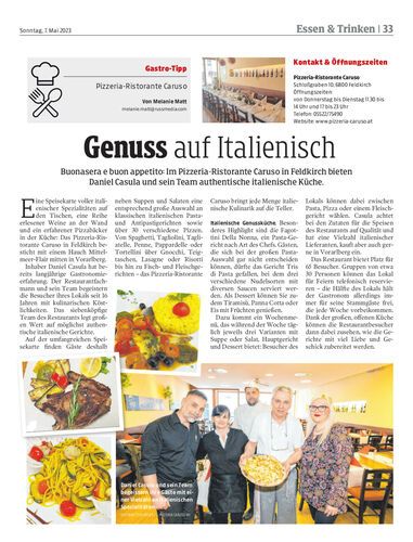 Buonasera e buon appetito: Im Pizzeria-Ristorante Caruso in Feldkirch bieten Daniel Casula und sein Team authentische italienische Küche.