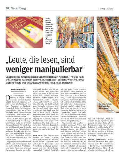Unglaubliche zwei Millionen Bücher besitzt Kurt Arnoldini (73) aus Rankweil. Die NEUE hat ihn in seinem „Bücherbasar“ besucht, wo etwa 30.000 Werke stehen. Was geschieht zukünftig mit diesen Schätzen?