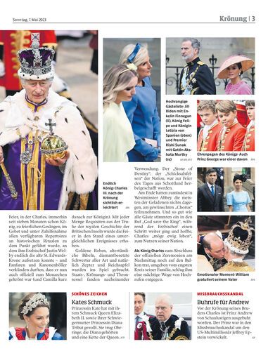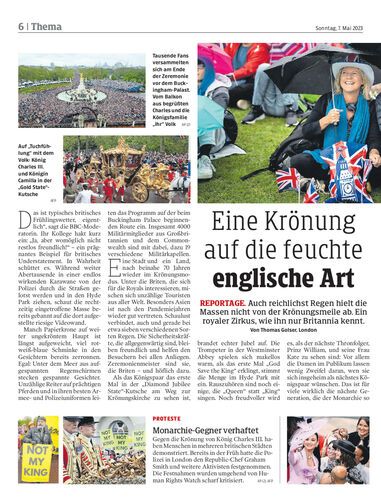AM SCHAUPLATZ. Auf das Wetter hatte der Palast keinen Einfluss. Alles andere war aber wie geplant prunkvoll und prächtig. Die Krönung von König Charles und Königin Camilla wurde zum Hochfest der Monarchie.