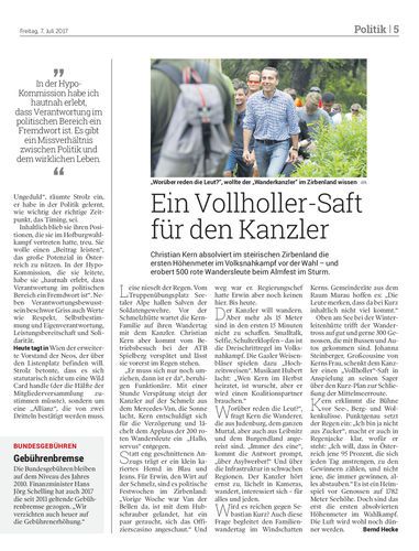 Christian Kern absolviert im steirischen Zirbenland die ersten Höhenmeter im Volksnahkampf vor der Wahl – und erobert 500 rote Wandersleute beim Almfest im Sturm.